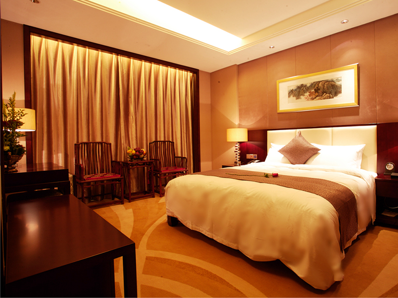 酒店擁有豪華客房103間(套)。其中標(biāo)準(zhǔn)間16間,豪華商務(wù)間66間,行政套房12間,絲路豪華套房5間,盛唐至尊套房2間,總統(tǒng)套房1間,無障礙房1間。