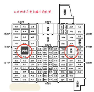 歷史資料中,東市和西市在長安城中的位置