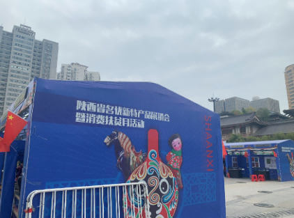 大唐西市小鎮(zhèn)廣場上的扶貧展銷會