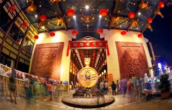 踏著一個個寫有名言名句的石階,看,惟妙惟肖的樂器表演的壁畫中間擺放著一枚巨大的刻有“大唐西市”的金色銅錢,一路前行,街道的半空中掛滿了色彩絢麗的絲綢,屋檐的兩側掛滿了一個個紅彤彤的燈籠,一幅大書法家王羲之的《蘭亭序》語句玲瓏剔透、瑯瑯上口、書寫流暢、使我們身臨其境......李白曾有詩云“長安市上酒家眠”作為千年前的世界貿易和文化交流中心,它獨特的魅力風情和無可比擬的歷史地位,將為您開啟一場非比尋常的盛唐之旅。