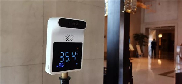 客人抵達(dá)測量體溫、出示健康碼、辦理入住間隔一米。