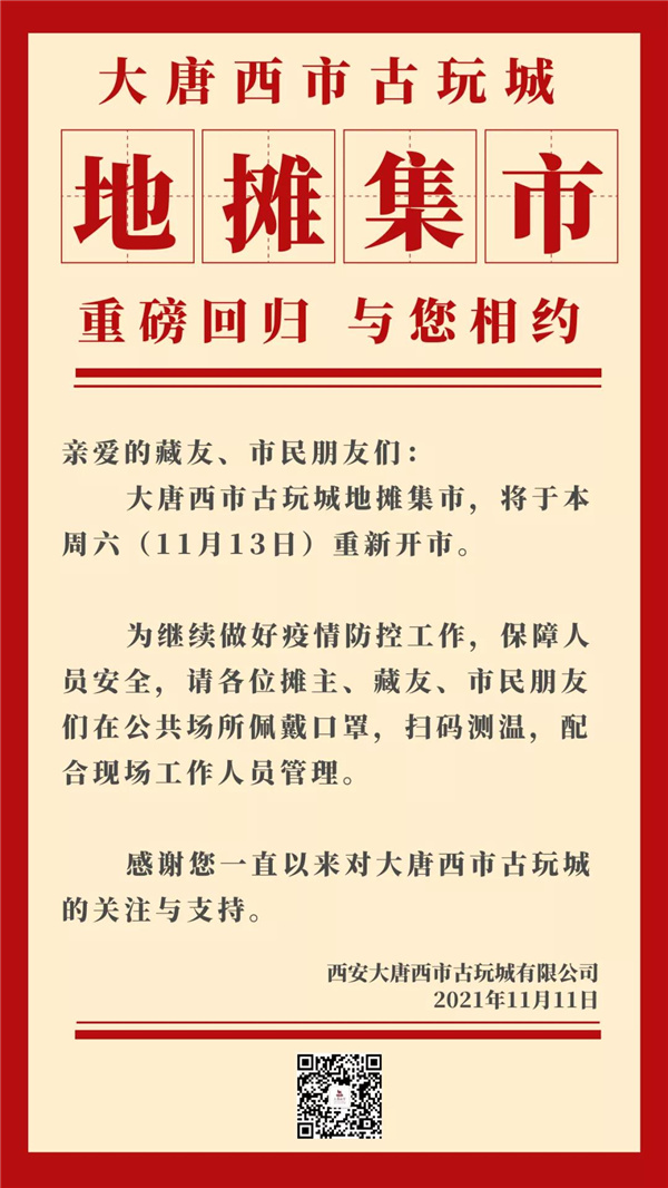 重磅回歸!大唐西市古玩城地攤集市本周六重新開市啦!