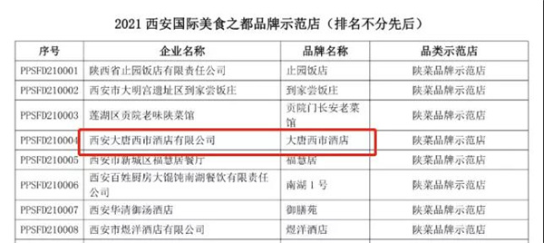 2021西安國(guó)際美食之都,年度品牌示范店,正式公告發(fā)布啦!大唐西市酒店,榜上有名!