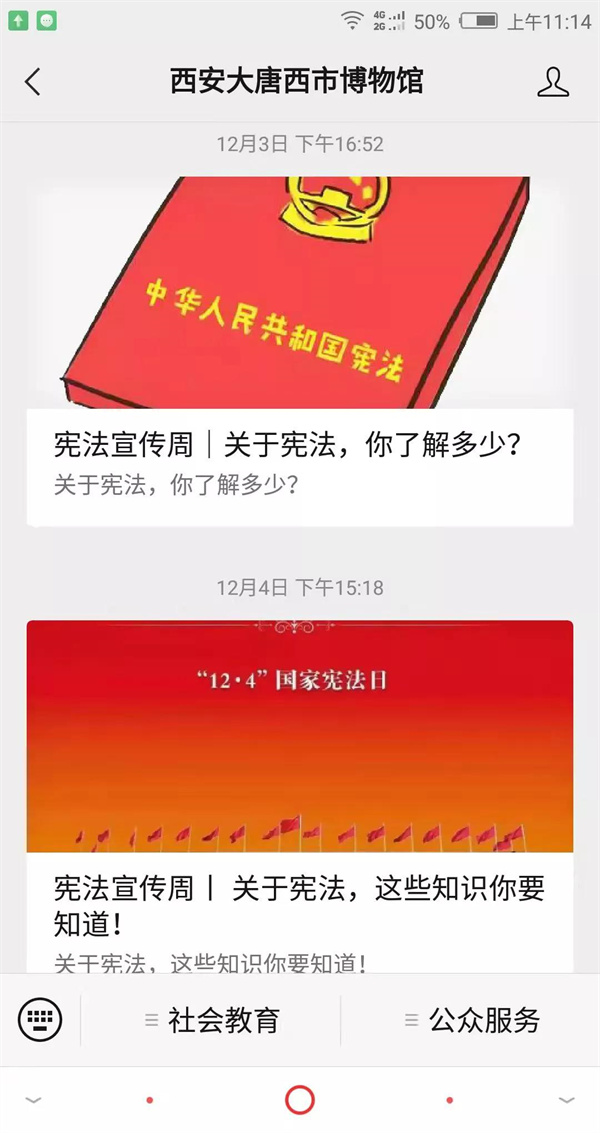 大唐西市博物館積極加強普法宣傳,利用官網(wǎng)和公眾號發(fā)布推文,傳播憲法的五大部分、公民的基本權利、以及憲法的常識和作用等。