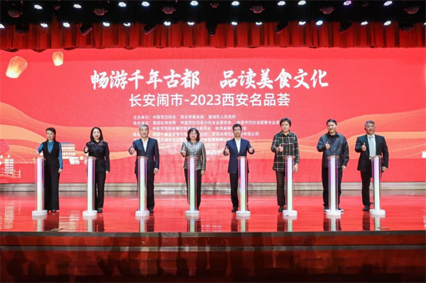 11月3日下午,由中國(guó)烹飪協(xié)會(huì)、西安市商務(wù)局、蓮湖區(qū)人民政府聯(lián)合舉辦的“長(zhǎng)安鬧市-2023西安名品薈”,在大唐西市正式開(kāi)幕。商務(wù)部駐西安特派員辦事處特派員胡劍萍,西安市商務(wù)局局長(zhǎng)張選民,中國(guó)烹飪協(xié)會(huì)副會(huì)長(zhǎng)喬杰、省商務(wù)廳商貿(mào)服務(wù)業(yè)處處長(zhǎng)邱艷,蓮湖區(qū)政府副區(qū)長(zhǎng)戴微,陜西省餐飲業(yè)商會(huì)會(huì)長(zhǎng)聶磊等出席,來(lái)自全國(guó)二十多座城市的美食行業(yè)協(xié)會(huì)代表、業(yè)內(nèi)專(zhuān)家、及省內(nèi)美食企業(yè)代表、媒體達(dá)人等五百余人參會(huì)。