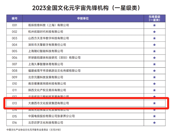 中國(guó)元宇宙星級(jí)供應(yīng)商(文化類(lèi))的入圍名單