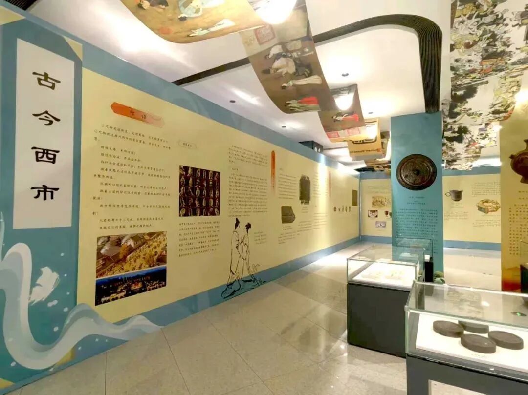 沿著“文化墻”便可輕松找到“古今西市——一場穿越時空的文化之旅”展覽現(xiàn)場?,F(xiàn)場展出的40余件藏品為復制品,不僅有唐代西市的生活品、工藝品、唐三彩等,還有交易的銅秤等物品。通過了解這些展品背后的故事,讓人感受昔日大唐西市的繁華。