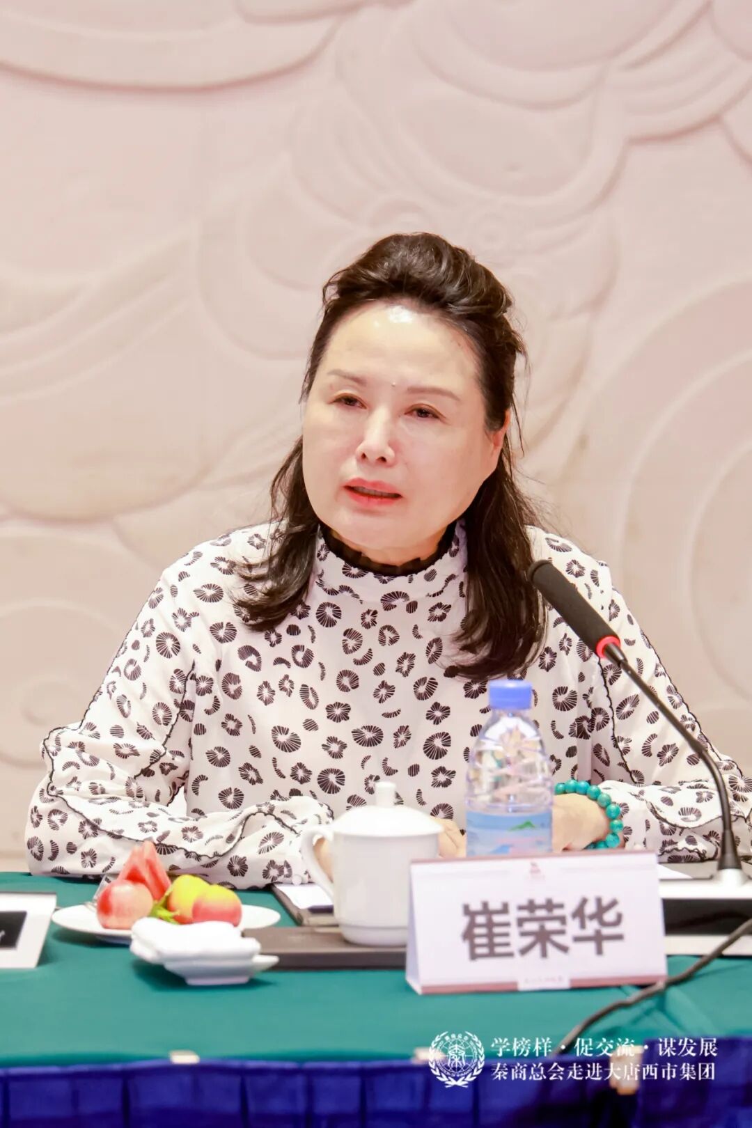 崔榮華會長首先對大唐西市取得的成績表示贊揚(yáng),就秦商總會的基本情況進(jìn)行了介紹。她說,黨的二十屆三中全會《決定》指出,要深化文化體制機(jī)制改革。優(yōu)化文化服務(wù)和文化產(chǎn)品供給機(jī)制,健全文化產(chǎn)業(yè)體系和市場體系,完善文化經(jīng)濟(jì)政策。探索文化和科技融合的有效機(jī)制,加快發(fā)展新型文化業(yè)態(tài),培育形成規(guī)模宏大的優(yōu)秀文化人才隊伍,激發(fā)全民族文化創(chuàng)新創(chuàng)造活力。今天我們組織帶領(lǐng)秦商總會50余家文化產(chǎn)業(yè)的會員企業(yè)走進(jìn)文化行業(yè)領(lǐng)軍企業(yè)大唐西市集團(tuán)這片承載著千年歷史底蘊(yùn)與現(xiàn)代商業(yè)智慧的熱土,體驗一場穿越時空的文化之旅,既是一次向榜樣企業(yè)學(xué)習(xí)的機(jī)會,更是對黨的二十屆三中全會精神的深入學(xué)習(xí)和貫徹落實。