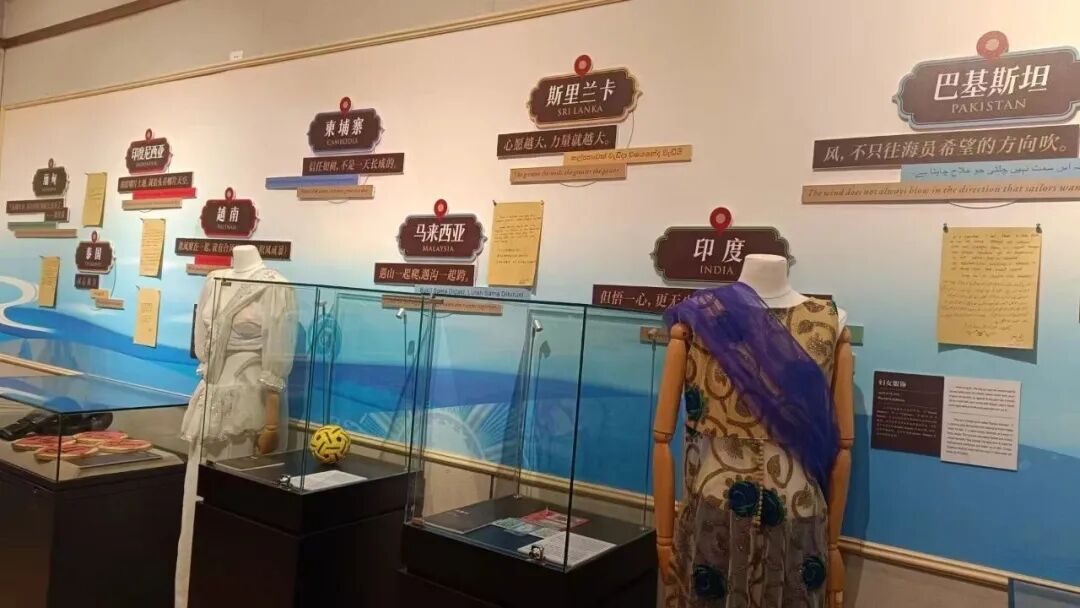 “有團(tuán)結(jié)的地方,定有幸福相隨”“美能拯救世界”“同心協(xié)力”“信任如樹,不是一天長成的”……步入展廳,來自哈薩克斯坦、俄羅斯、泰國等國家的名言諺語分別用中英文及所屬國家的語言翻譯,置于一件件展品身后,作為一種獨(dú)特的標(biāo)識,引領(lǐng)觀眾探索不同國家的文化魅力。